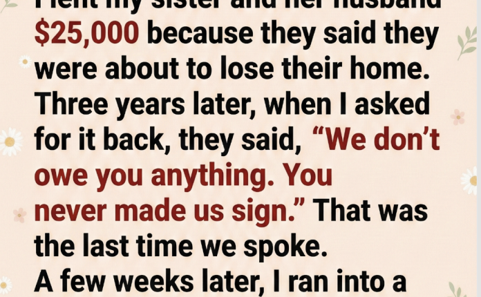 I Gave My Sister $25,000 to Save Her Home — Three Years Later, She Said I Was Owed Nothing, and That Lie Finally Caught Up to Her