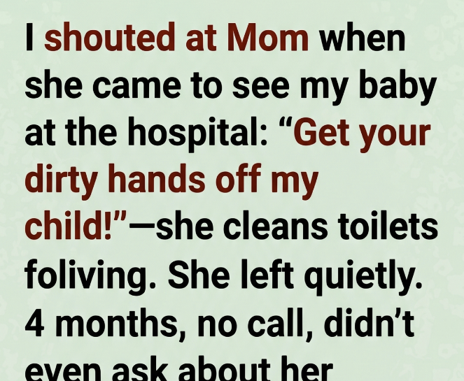 At the time, I felt justified. Exhausted. Overwhelmed. Ashamed in ways I didn’t know how to name. My mother cleaned toilets for a living—office buildings, train stations, anywhere that needed someone invisible to scrub away other people’s messes. I had spent years pretending that didn’t bother me. But there, in that pristine hospital room, holding my perfect baby, all my buried resentment spilled out in one unforgivable sentence.