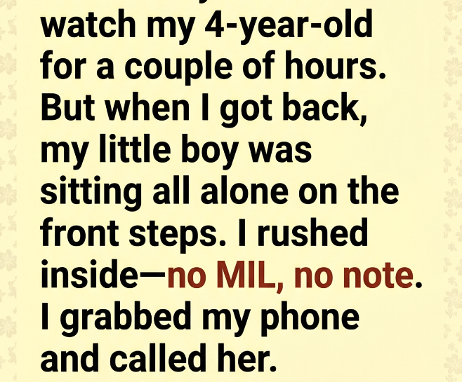 I asked my mother-in-law to watch my four-year-old for a couple of hours. It wasn’t something I did often. I’m careful about who I leave my son with, but she had insisted so many times, saying she wanted to spend more time with him, that I finally agreed.