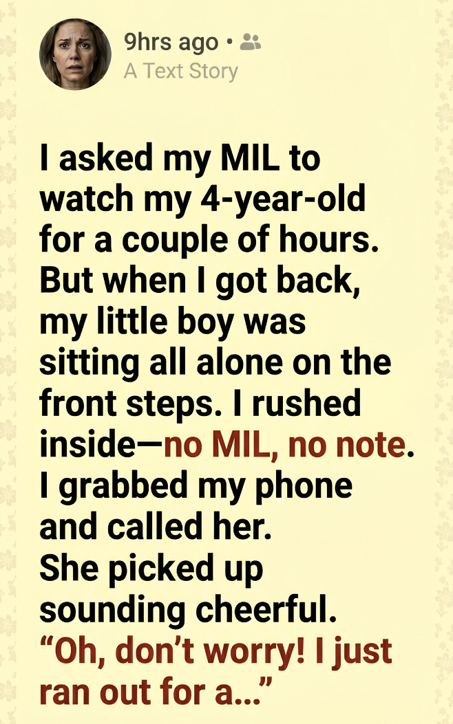 I Left My Son With Someone I Trusted for Two Hours—When I Came Back, He Was Alone on the Steps and Everything I Thought Was Safe Was Gone