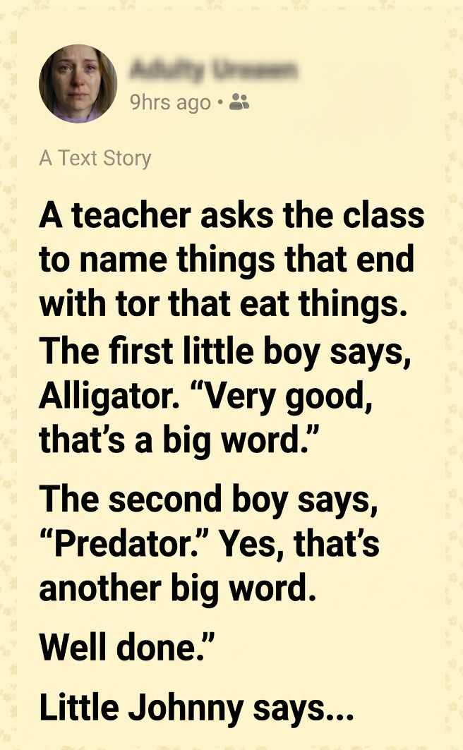A TEACHER ASKED FOR WORDS THAT END IN “-TOR” AND EAT THINGS—LITTLE JOHNNY’S ANSWER LEFT THE WHOLE CLASS STUNNED