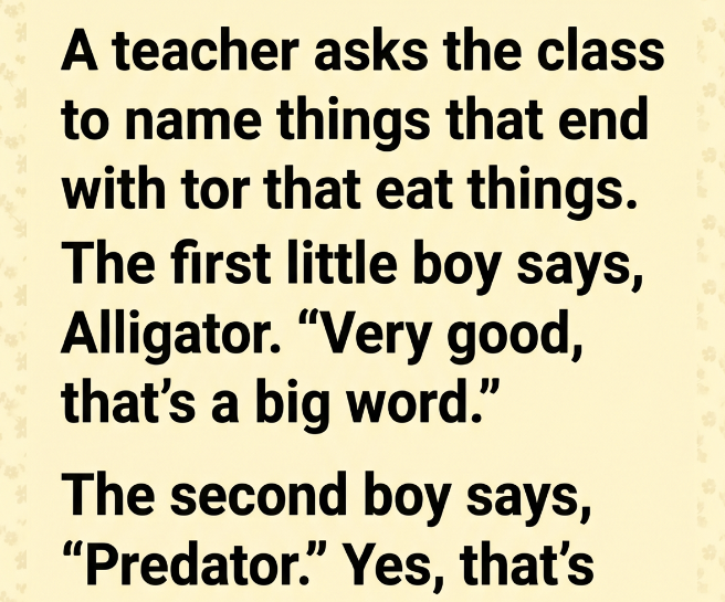 A TEACHER ASKED FOR WORDS THAT END IN “-TOR” AND EAT THINGS—LITTLE JOHNNY’S ANSWER LEFT THE WHOLE CLASS STUNNED