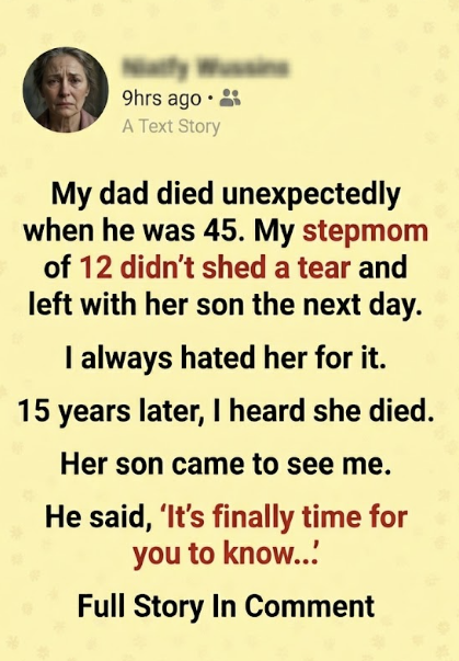 My stepmom didn’t cry when my dad died—15 years later, her son told me the truth