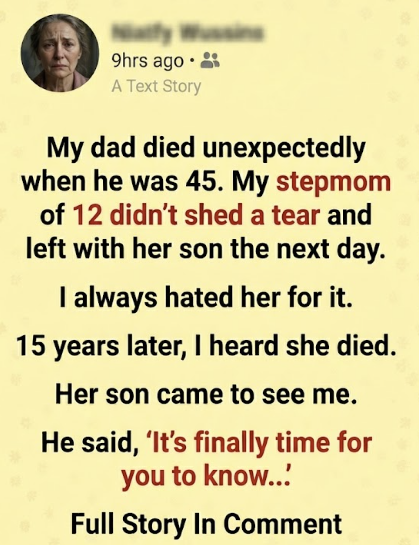“He knew you would need stability,” he said. “And he thought… if she stayed, it would make things harder. For you. For everyone. There were things about the house, about finances… about family… that he didn’t want complicated.”