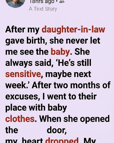 After my daughter-in-law gave birth, she never let me see the baby. She always said, “He’s still sensitive, maybe next week.” After two months of excuses, I went to their place with baby clothes.