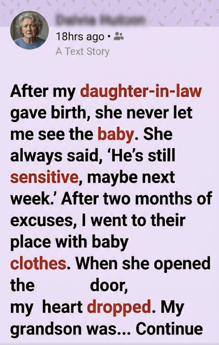 After my daughter-in-law gave birth, she never let me see the baby. She always said, “He’s still sensitive, maybe next week.” After two months of excuses, I went to their place with baby clothes.