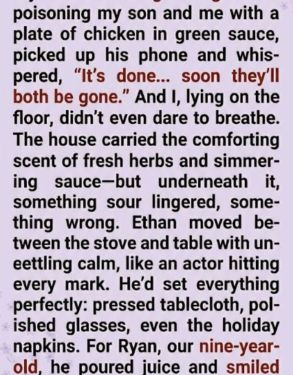 Ryan pressed himself tighter against me on the bathroom floor, his forehead damp with sweat, his breathing shallow and uneven. I still had 911 on the line, the phone clutched so tightly in my hand it almost hurt.
