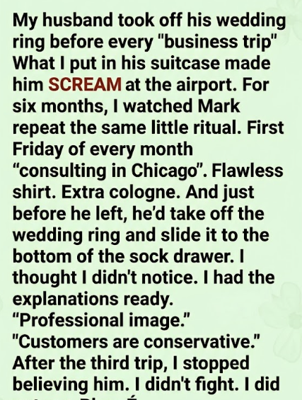 Same polished shirt. Same careful grooming. A little too much cologne. And right before he walked out the door—every time—he’d slip off his wedding ring and tuck it into the back corner of his sock drawer like it meant nothing.