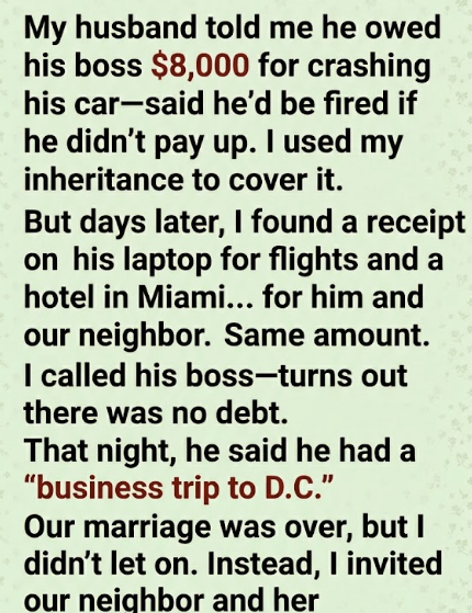 Like she hadn’t just booked a trip with my husband using money he stole from me.