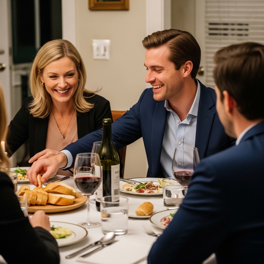 Dinner continued as normal. No one said anything. The conversation went on. Plates clinked. Glasses were refilled.