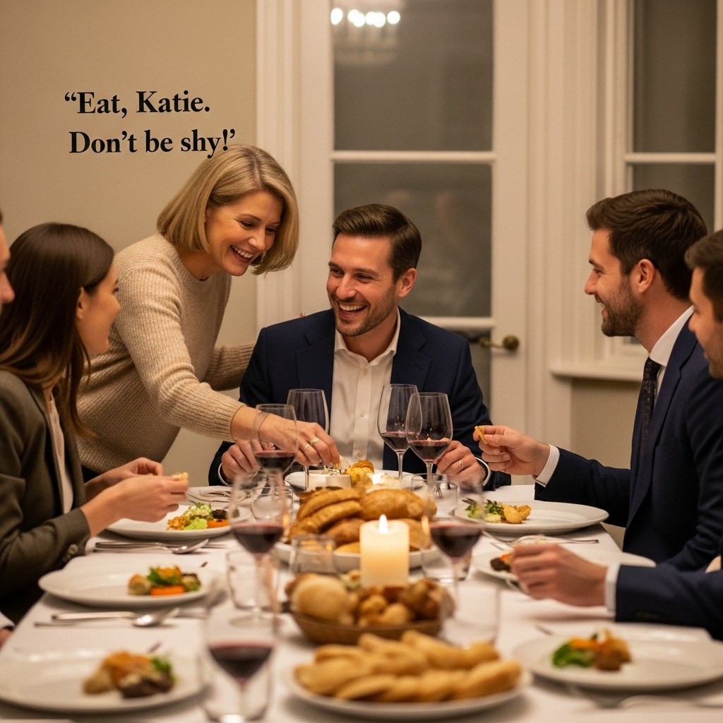 “Eat, Katie. Don’t be shy!”