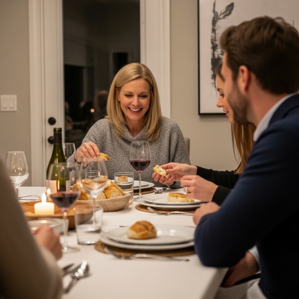 At another family dinner, she watched me eat in silence. When dessert arrived, she leaned in and said sweetly,