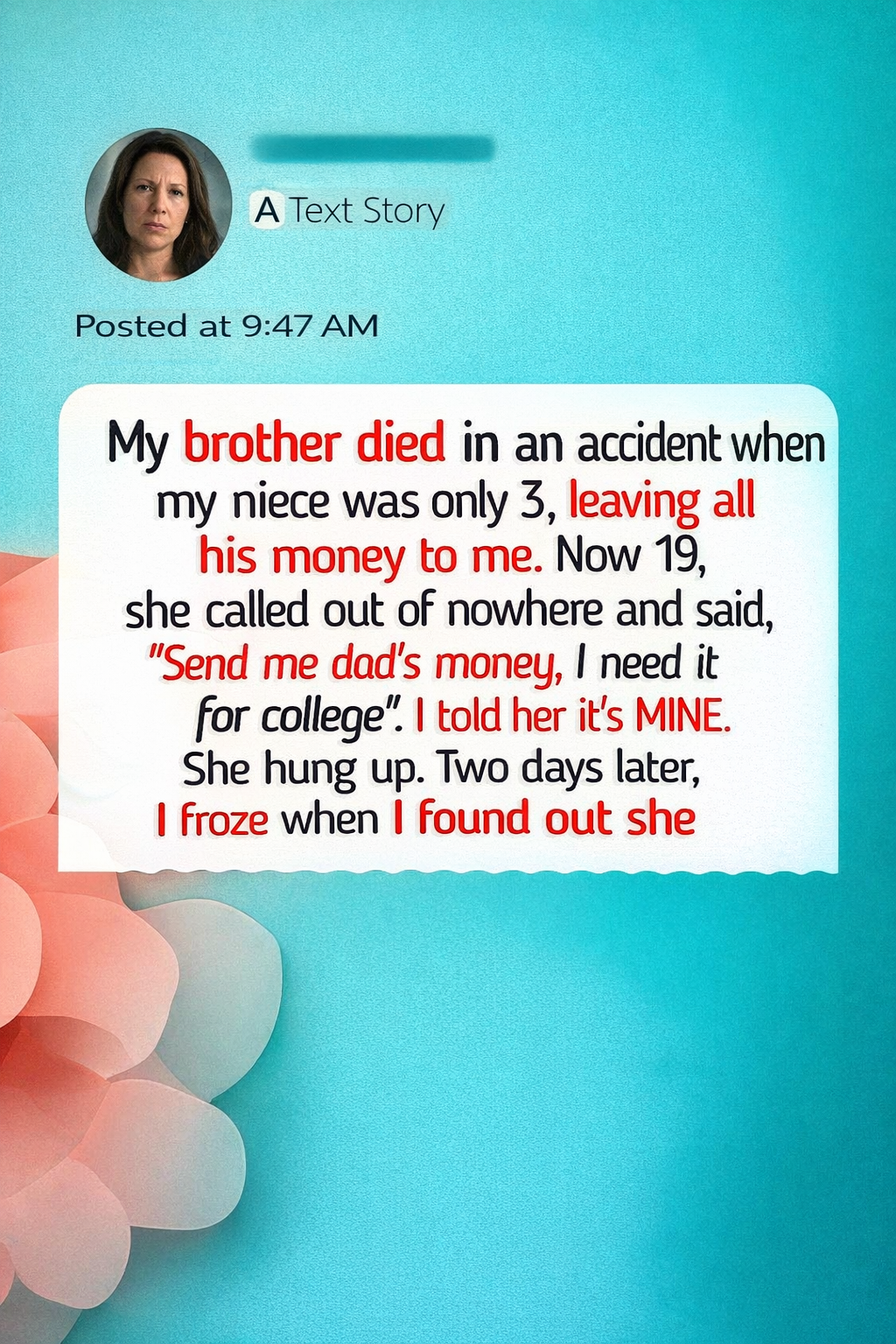 Please, read my story before you judge. When my niece was only three years old, my brother died in a horrible accident. Our whole family fell apart for a while. He was a young single dad, and no one expected something like that to happen.