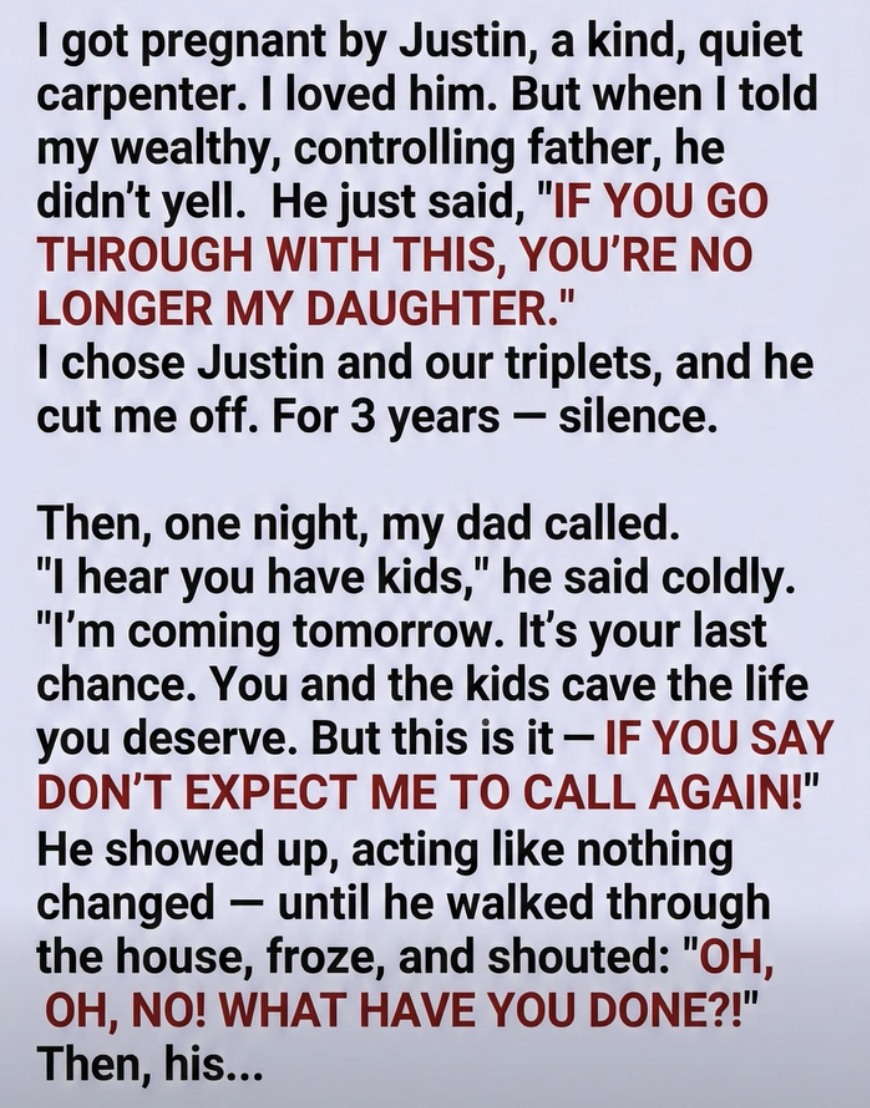 Then it hit me. The full, crushing weight of the revelation. It wasn’t just about my husband being “poor.” It wasn’t about status or lineage in the way I understood it. MY MARRIAGE TO THE MAN I LOVED HADN’T JUST DISAPPOINTED HIM, IT HAD DESTROYED HIS LAST, DESPERATE ATTEMPT TO AVOID UTTER FINANCIAL RUIN. His disownment hadn’t been an act of snobbery, but a desperate, final attempt to force me into a life he thought would save what little dignity he had left. My choice, my love, had stripped him bare, revealing the lie he’d built his entire life upon.