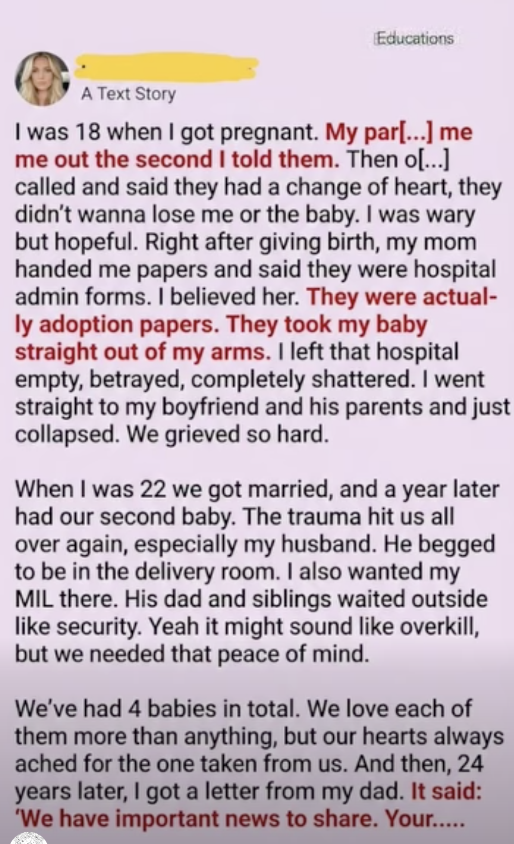 We survived, though. We clung to each other. When I was 22, we got married. A year later, we were expecting our second baby—our first one together that we would be “allowed” to keep. But the trauma didn’t just vanish. It hit us all over again. My husband was terrified. He begged the doctors to let him stay in the delivery room, refusing to leave my side for a second. I told him I needed his mother there, too. His dad and his siblings stood outside the hospital room door like security guards. It sounds like overkill to outsiders, but we needed that peace of mind to believe no one would steal this baby too.