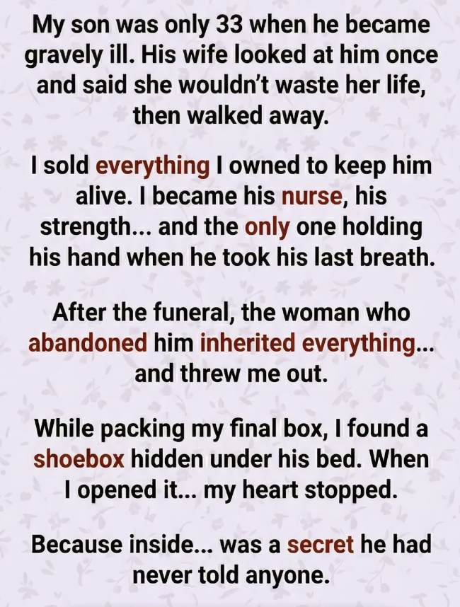 I stared at her, trying to understand how someone who abandoned him could suddenly claim everything he left behind.